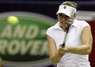The racket face to during this stage should be slightly closed. When the ball finally arrives, swing across your shoulder– (this is where the decision of whether you swing with the single-handed or double-handed backhand comes in). The swing across the shoulder for the single-handed backhand may not be a complete swing as the human arm can swing to only certain limits. This is one of the advantages of the double handed backhand which has more of a complete swing.